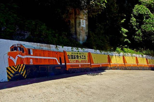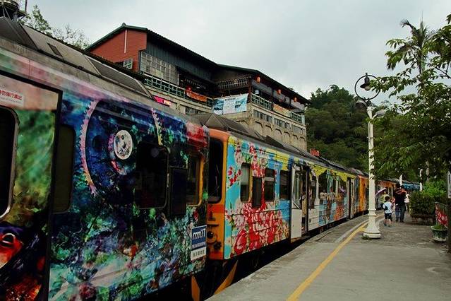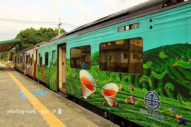 集集线的彩绘柴油列车,每节车厢都是不同的主题