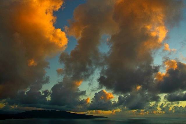 随着夜色的降临,山下的民居渐渐亮起了一星星的灯光,映衬着恬静的大海,感受从海边吹来的气息,特别的舒适。