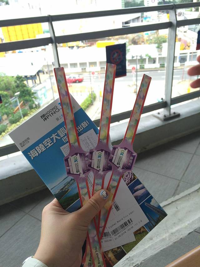 缆车都是大家熟悉得不得了的,刚好看到有水晶缆车,于是想着去过把瘾吧,昨天下雨还一直担心又下雨影响缆车出行,看来多余了,人很少,估计去得比较早,待会下山可以顺便去【东荟城】看看