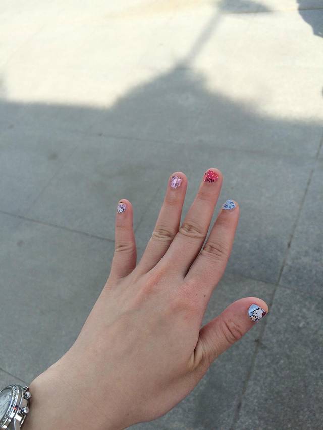 原谅偶的肥手,其实是拍照角度问题,没那么胖滴,就是想拍下指甲上的hello kitty↖(^ω^)↗