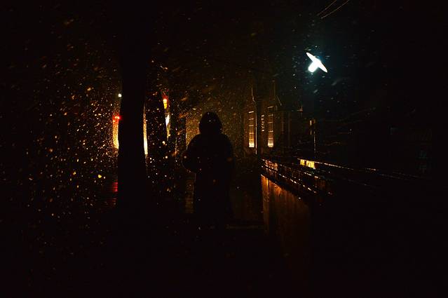 在沙县小吃的时候,外面的雪越下越大,就冒雪拿着数码相机去拍雪花了。虽然是D3200,但是效果还好啦~我出来的时候拿一台胶片(全机械很重...)和一台数码,是想拿数码拍一些不是很值得用胶卷拍的画面,大家也知道D3200成像不太好。然后一路上只有这次夜景用了数码(因为我的胶卷是低速片,感光度100或200)。以后就都没带了。