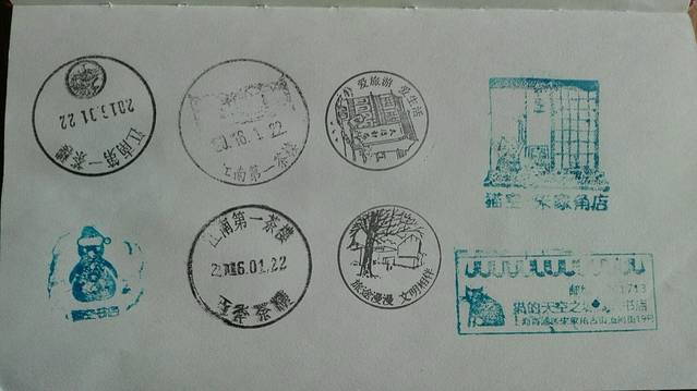 嗯~这个章可能大家觉得没什么,但这绝不是其他店里的普通纪念章!这是仿邮局日戳的风景戳,虽然是自制的,但看得出卖家还是很有心的,要知道这样一枚戳的造价大概顶的上普通明信片店里的一大箩筐的纪念章了。