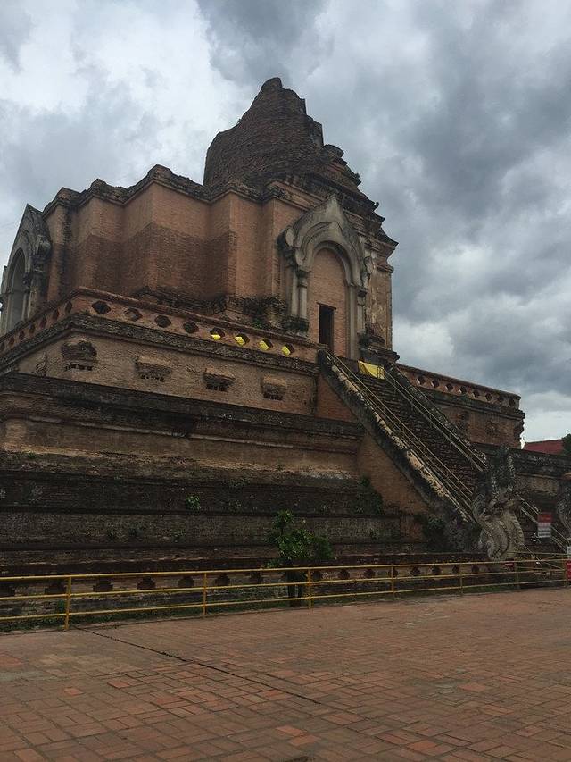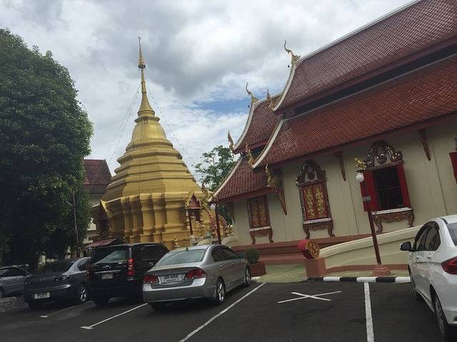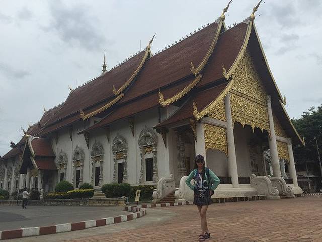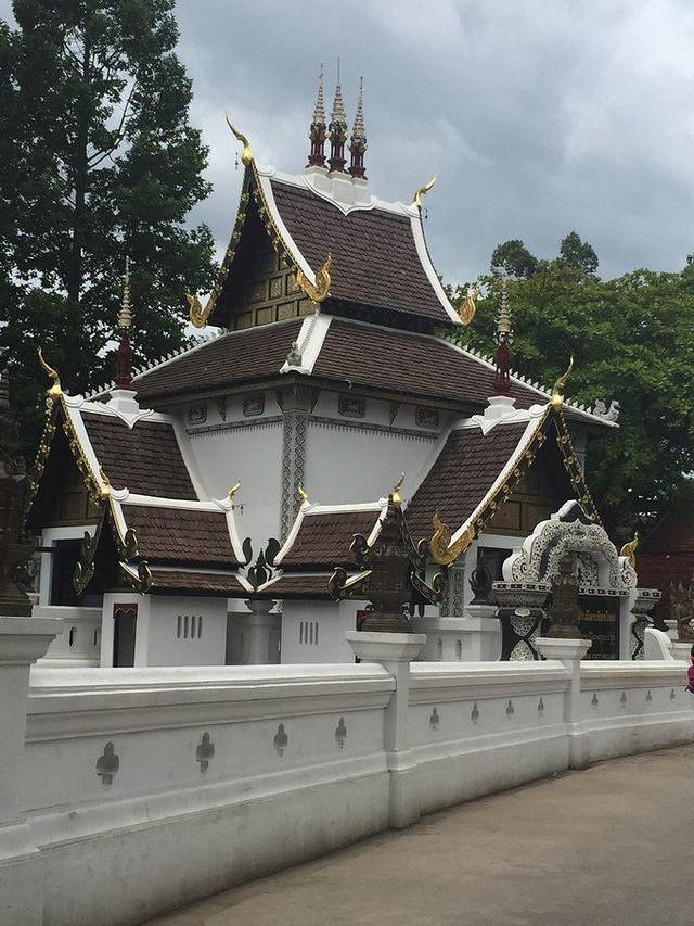 又名大佛塔寺,是清迈市区最著名的寺庙。天气是阴天,照片的效果不好,但是寺庙的氛围是安静祥和,神圣庄严,跟国内寺庙的云烟袅绕是截然不同的。进到庙堂是要脱掉鞋子的,而且是左脚先迈进去。