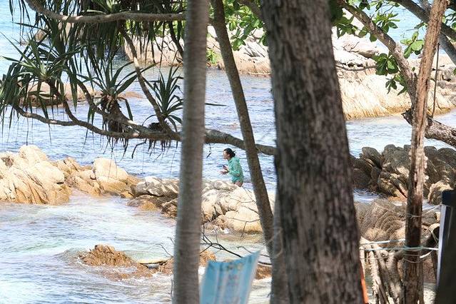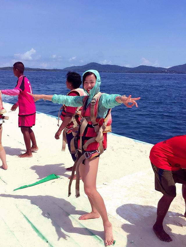 手机的防水套,在水下拍照可以用,拍出的效果也还不错。这是我的小失误,应该备上两个备不时之需,那样在水里玩的时候也不用担心手机会沾到水了。要去的亲,不要忘记提前买好哦。后来又去捉鱼,防晒服都脱下来当道具了,也没抓住一只,还累的要死。怪不得他们不怕人,这是在海边调戏我们那!在海岛,到处都是穿比基尼的,哈哈,男的可有眼福了。带上浮潜工具就好了,还能把头伸到水里好好看一看,熊孩子后来下水游泳了,在水里睁开眼睛也能看到鱼儿。大概下午四点的时候,我们就准备返程了。