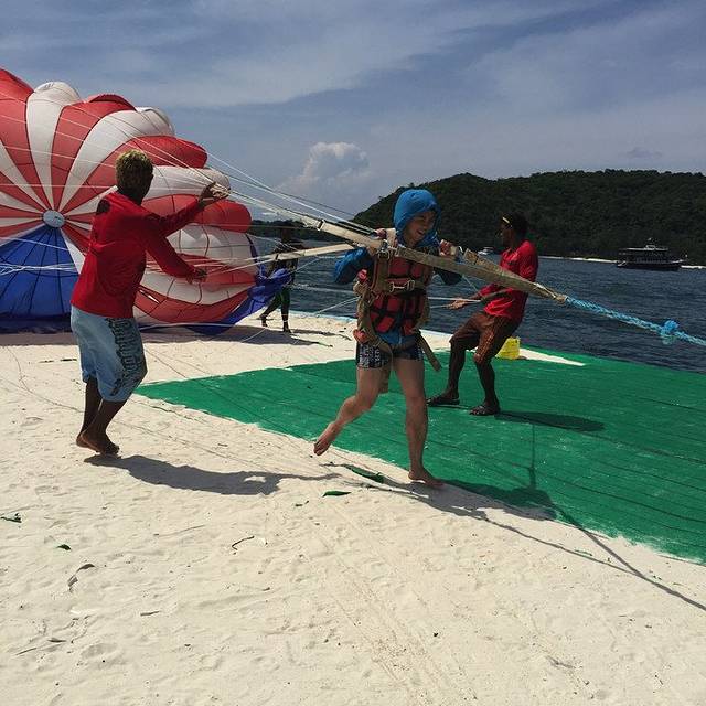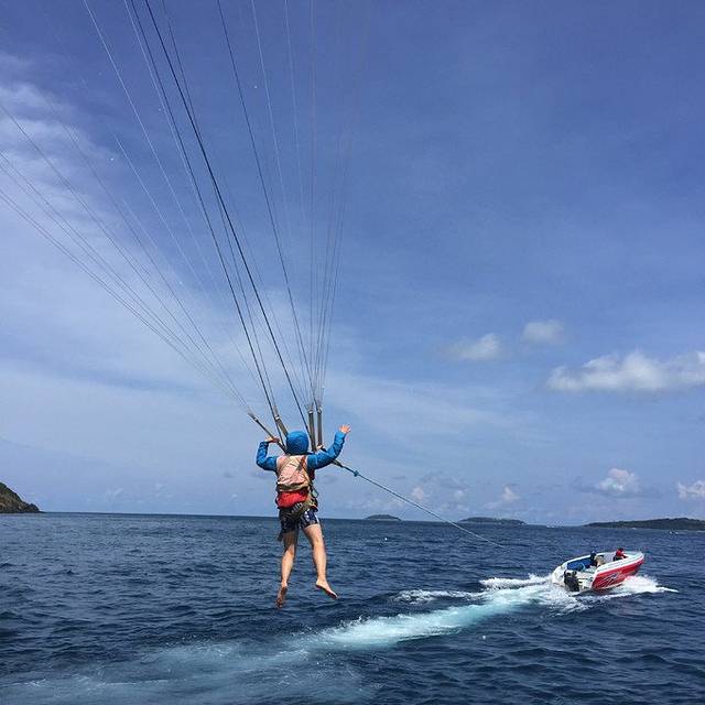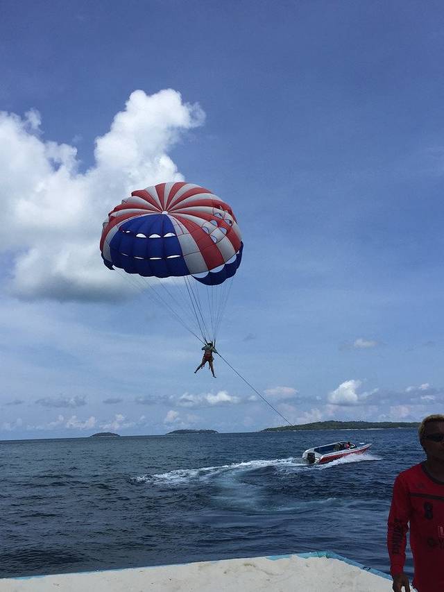 今天的行程是昨晚才安排的,而且差点就没报成团。总不能闲逛吧,飞往清迈的航班要到晚上八点呢。出海的话一般下午六点前就返回了,所以时间是足够的。肿么办呢?我想去珊瑚岛玩水上项目,不玩不甘心,还有滑翔伞,在水下玩过了,还想在天上飞。