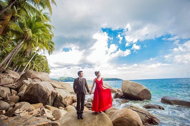 普吉岛,一直是我的梦想之地,我喜欢大海,那一片片的蓝给人无限的浪漫和遐想。一个偶然的机会和朋友一起吃饭,聊到了婚纱照,她说一个朋友是在普吉岛拍的,很不错。当时我就拍脑瓜做了决定,去那里拍婚纱照,国内的婚纱照千篇一律,烂大街的感觉,在异国他乡拍一个,岂不是更有纪念意义,顺便还能玩一趟