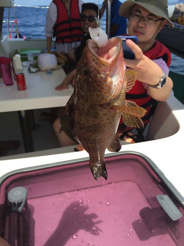 可谓是硕果累累啊,那姐们儿最牛,钓了个那么大的石斑鱼,厉害! 导游在我们返程的时候给我们做了生鱼片,很棒,真的是自己动手,丰衣足食。这体验,还是蛮不错的。一路上导游阿福都对我们很照顾很热心,服务也很周到。
