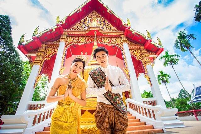第二天的行程安排是拍婚纱照,前一天晚上的酒店是摄影店安排的,而且也有接机。来接的司机早早就等着了,一上车还给我们俩递了矿泉水,虽然交流起来有点困难,可是他的友好还是让我对泰国留下了好的印象。出租车先带我们去摄影店选拍摄的衣服,然后把我们送到酒店。
