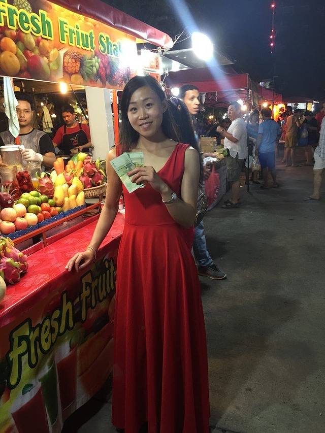 玩累了,也饿了,于是就去街上溜达了。因为这个地方不是热闹的游客集聚区,所以周围也没有什么繁华的地方,这里居住的也都是当地人,但夜市上还是挺热闹的,跟中国的夜市感觉是一样的,卖小吃的好多,我们就搜集了一大堆,打包回酒店慢慢享用。印象中那个芒果和泰国香米的东西很好吃,那里的香米才是真的好吃,国内好多地方卖的只是长得类似,但是味道根本没法比,所以在泰国一定要尝尝最正宗的香米,现在想想都馋呀他们那儿辣的食物也是挺多的,个人感觉味道都还挺棒的。