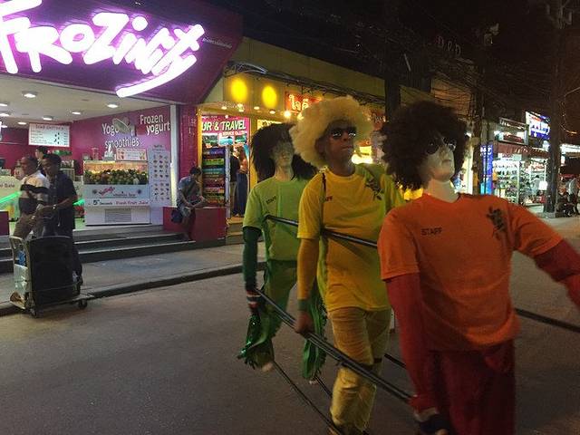 第一站——巴东,由此我们的泰国游才真正拉开了序幕。在酒店安顿下来,洗漱完,就是去街上溜哒哒哒哒哒哒哒~~~在泳池玩的时候,不小心踩在了熊孩子的眼镜上,于是还有一项艰巨的任务——修眼镜