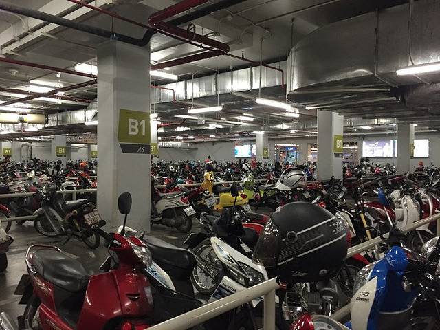 地下停车场里,摩托车有专门的区域,摩托车可真是泰国的特色之一。