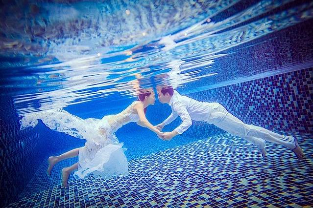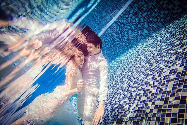 水下拍婚纱照,那叫一个受罪,不仅要做动作,要笑,还要睁开眼睛,真实不容易啊。