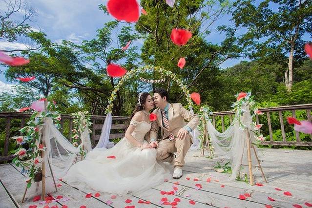 熊孩子给我挑的红耳朵,卖个萌!只是简单溜达一圈,体会下热带地区的激情四射。拍婚纱照真是一项体力活儿,好累,还是回去洗洗睡吧~~