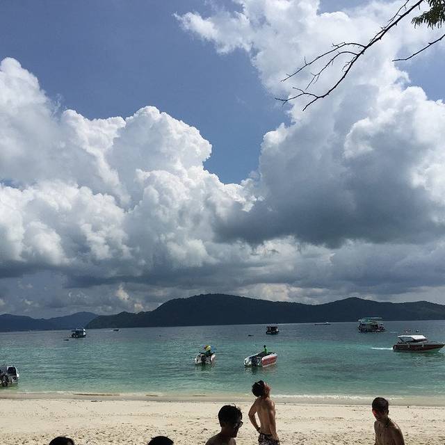 第一站是珊瑚岛 coral island。乘坐的是普通的快艇,而且一个团里的人真的是很多,大概有四五十人的样子,像是在放羊呀!跟昨天的待遇,没法比。座位都是人挨人,感觉好闷热,加上熊孩子身体一直不舒服,不想说话也不想动,我也没有昨天那么兴奋了。果然不是私密岛屿,人多,但是水上项目是一定要玩的。