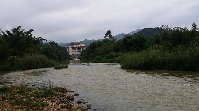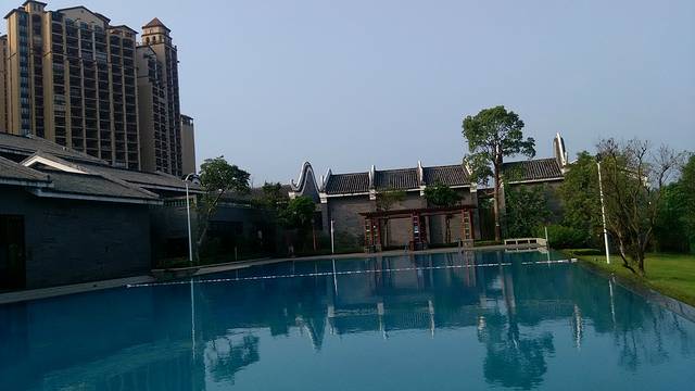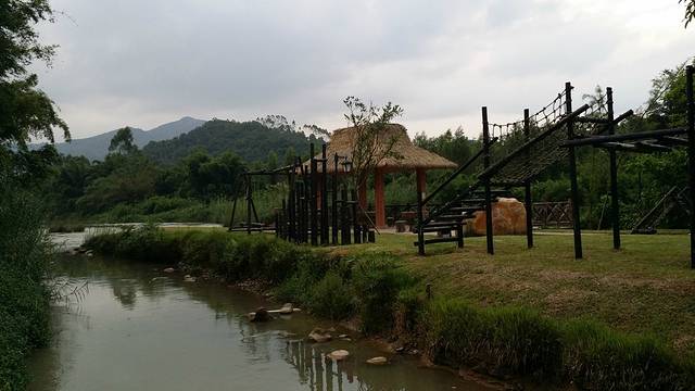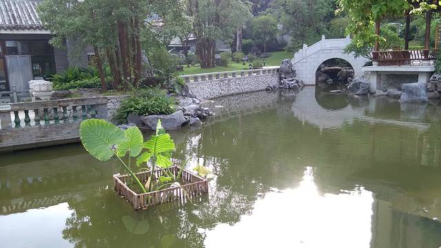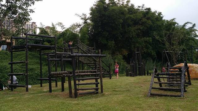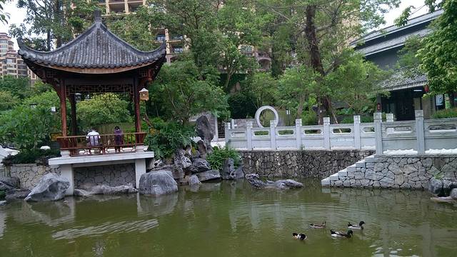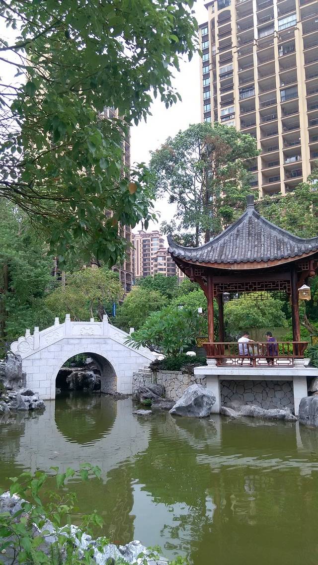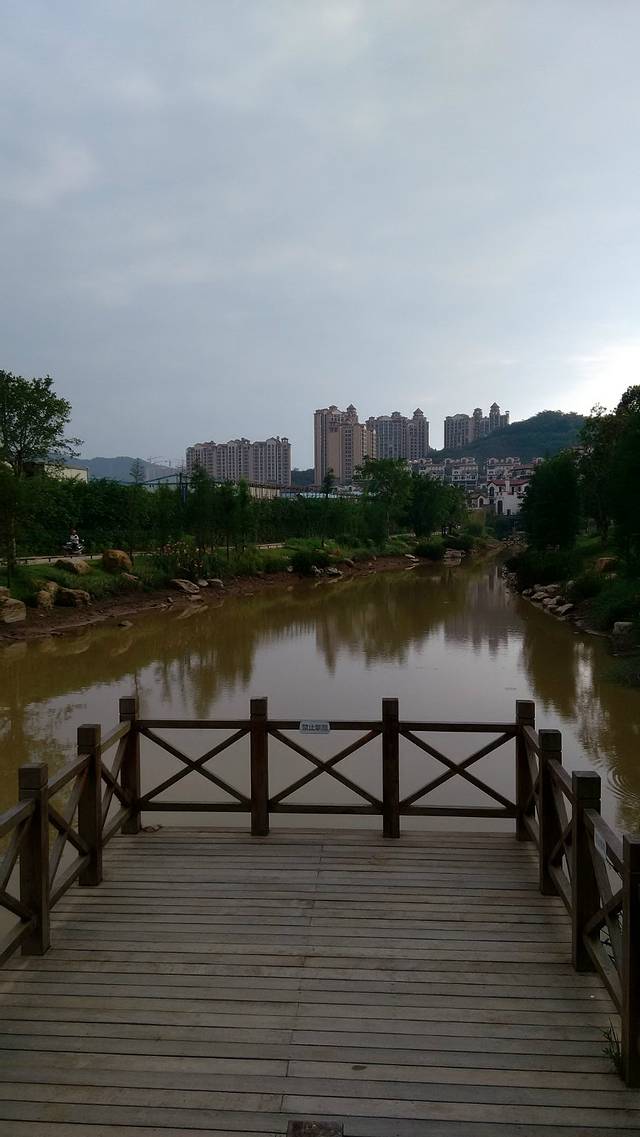 富力楼盘的小公园边有小河淌过,一段缓缓,一段湍急。