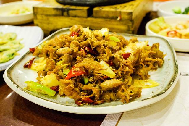 出门在外的每一天都是从早午饭开始的,这一站安排在延边大学。延大附近自然是不缺美食,这家店有团购,双人餐只要60+,加5元可以吃到两种口味。不得不承认,这是那几天在延吉吃的最便宜的一餐了……