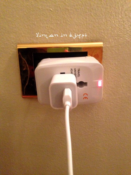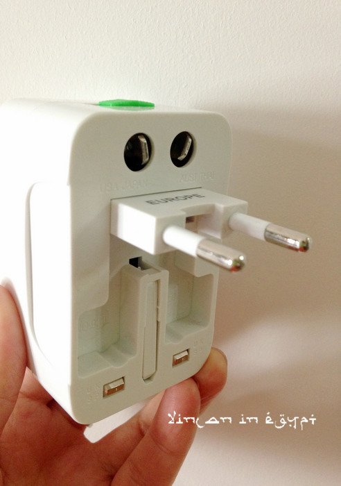 有一样东西,是去埃及一定要提前准备好的,那就是转换插头。埃及的电压是220V,插座是欧标的,需要那种两个小圆柱的插头,和国内的不一样。如果不带转换插头的话,就没法给手机相机IPAD充电啦!