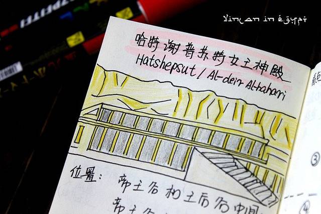 行程中会去到的每一处神庙,都做了详尽的笔记。包括地理位置、建造年代、所属法老的生平事迹、供奉神祇、建筑物的尺寸数据、神庙的看点(雕像、壁画......)都有记录。