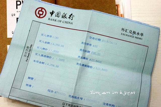 国内的银行基本上都没有埃镑可换,我在换钱的时候,说我要换埃及镑,柜员像是听到了天方夜谭一样......所以需要在出行前到【中国银行】去换美元,到了埃及以后,可以在机场用美元兑换埃镑。