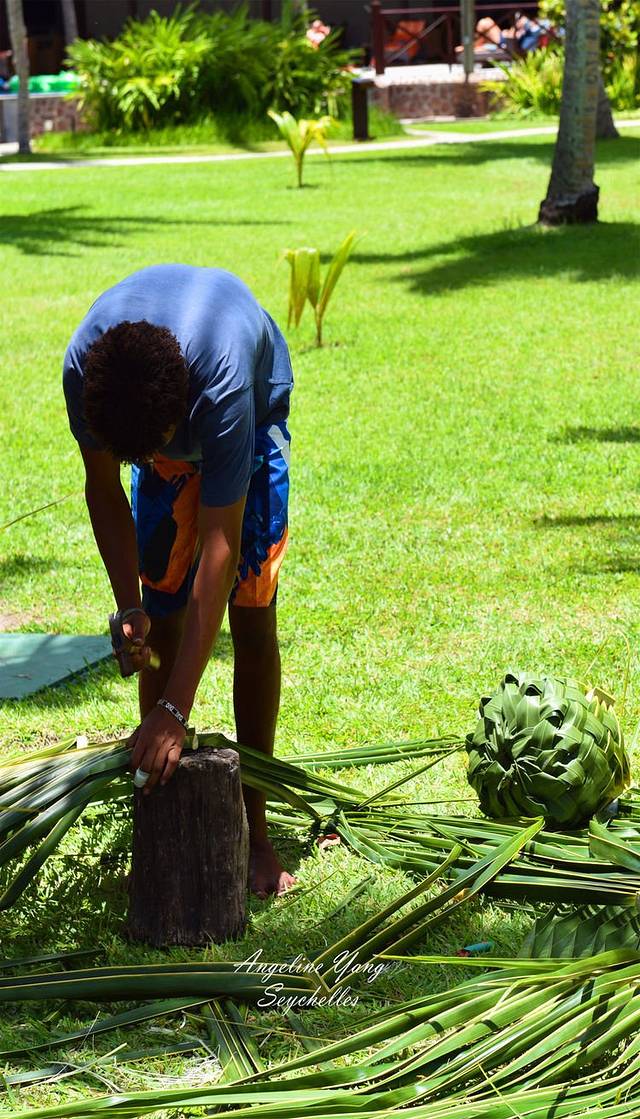 这位小黑哥认认真真的用树叶手工编制成一个又一个小篮子,看上去跟中国结的手法有点儿像