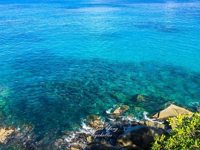 这里的浪比较大,拍打在岩石上声音很响,海水一样清澈透明,从酒店停车场走到这里大概还需要上坡下坡十分钟,住在这家酒店的客人有免费的小车可以坐