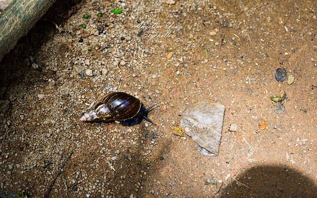 超级大的大蜗牛,背壳油亮到跟我们家小狗啃完骨头的鼻子一样
