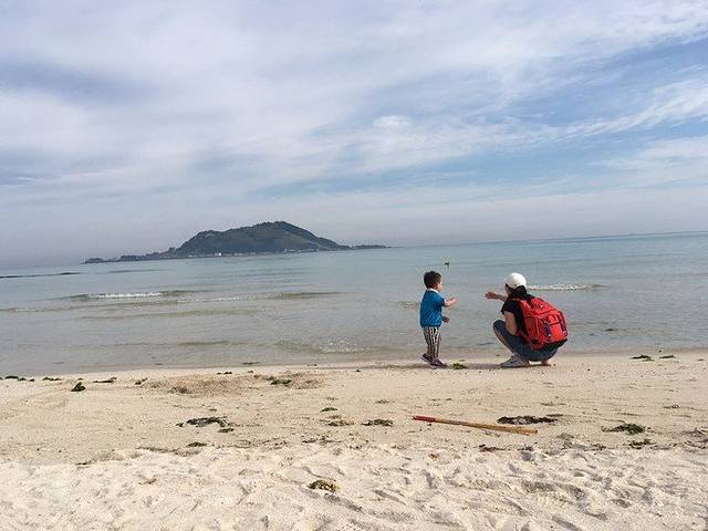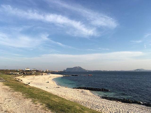 而且我们没去大部分中国人必去的景点,相对来说有更多的时间自由旅行,我们去咸德的海边发呆喝咖啡,去牛岛住一天、早晚在牛岛骑行,在海边的民宿房间里坐着看日落喝着啤酒,找当地的美食吃,在济州岛海边疯狂骑行,这些经历真是前所未有的。