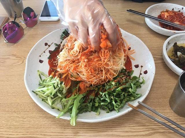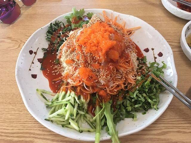 在牛岛吃的生鱼片面条,在济州岛吃过的最好吃的一顿,没有之一。至今,让我念念不忘。