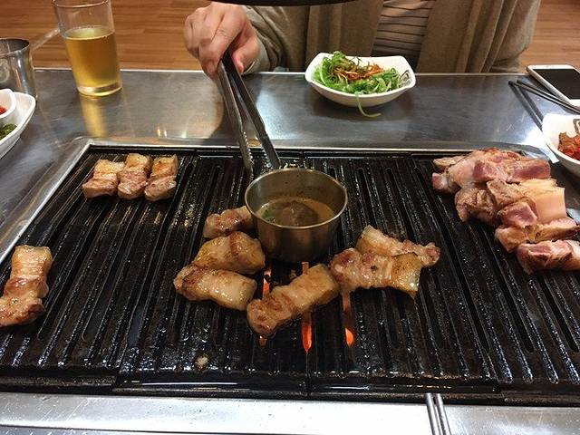 在济州岛的第一餐:宝健路上的喋喋不休烤肉 (人均 100元),凌晨00点吃饭好罪恶啊,说好的减肥呢?
