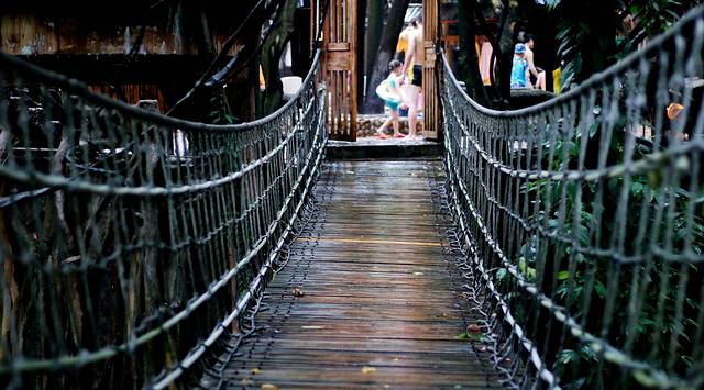 空中吊桥是通往树上温泉,下午六点半关闭一次性只能同时走三人,而且不能跳跃,走在桥上稍为用力就晃动,胆小的有恐高症的人还是不要尝试,绕道去树上温泉。