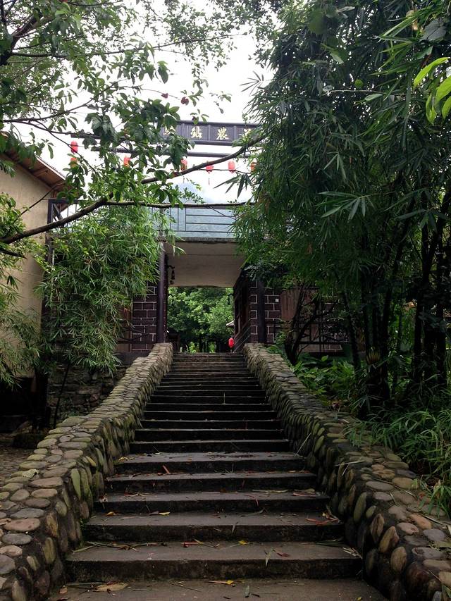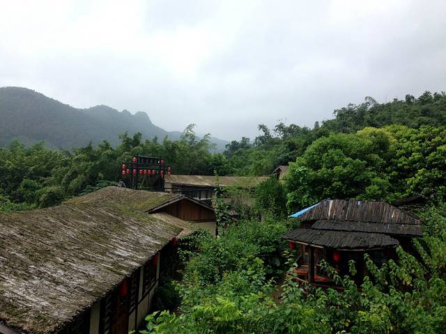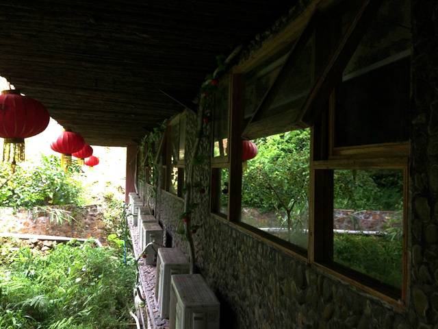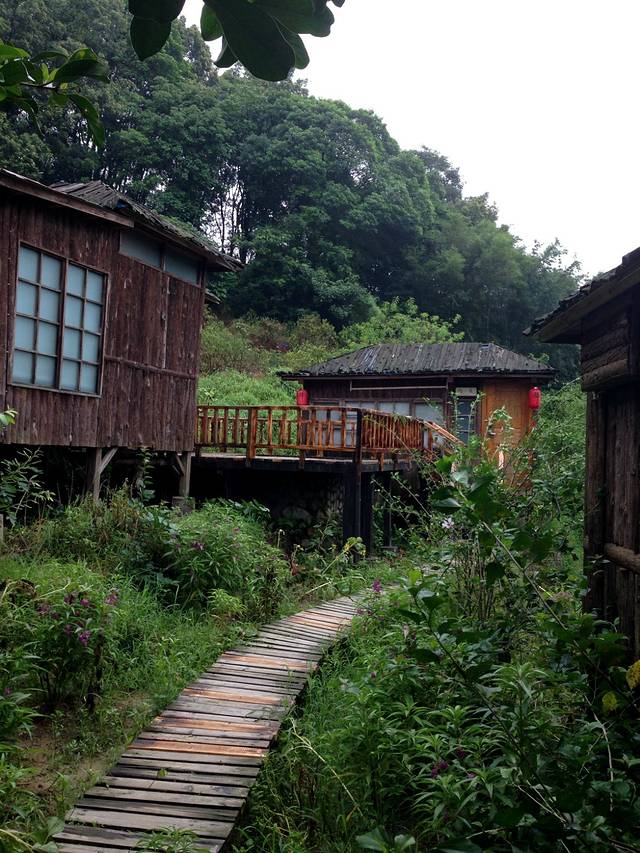 天门沟九州驿站,避暑山庄,树屋。避暑山庄 一进到山庄就看到一座古典园林式的山庄出现在我们眼前 ,依山靠水,背后就是一大片原始森林,前面就是常年流淌着的小溪 从远看避暑山庄就是森林中一个点缀 白色的墙 还有阳台,避者山庄的客房不算是真正的木屋,外墙都是用砖快组成只有室内才用木板装饰。