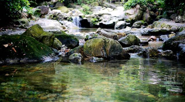 小溪清清澈澈,晶莹剔透,水下是是碎碎的卵石。卵石光滑滑的,很容易滑倒
