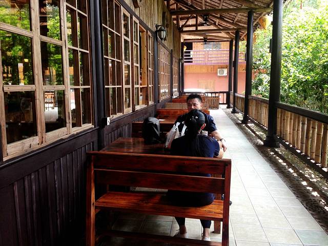 前台大厅,也是木头为主材料,要是没有这些现代化的装修还真以为是回到80年代以前的农村住的木棚,游客很多,前台服务员都细心耐心的解答客户