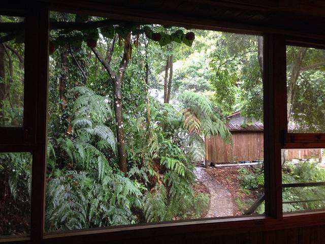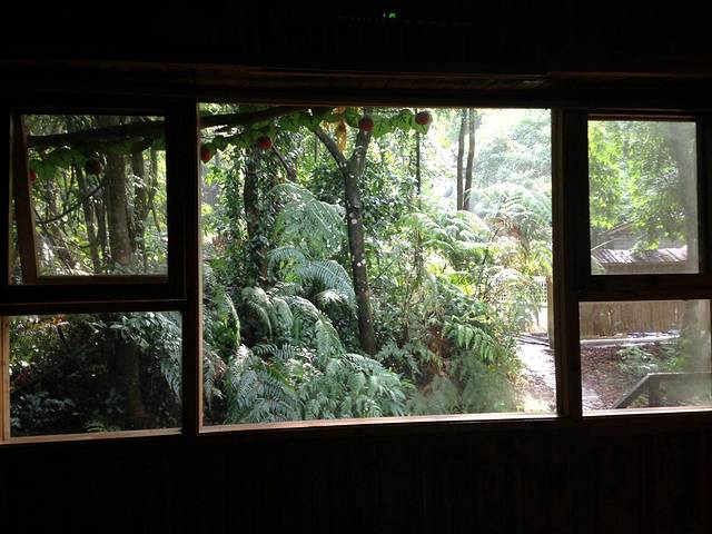 躺在床上便能看到窗户后面那片原始的森林,午后下了场雨空气中都散发着一股泥土的大自然芬香,树叶上还沾有雨滴。