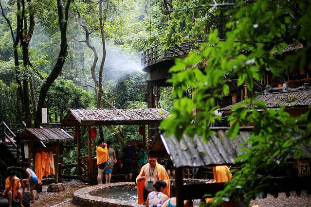 暑假期间看到最多的就是一家出来泡温泉的