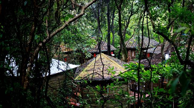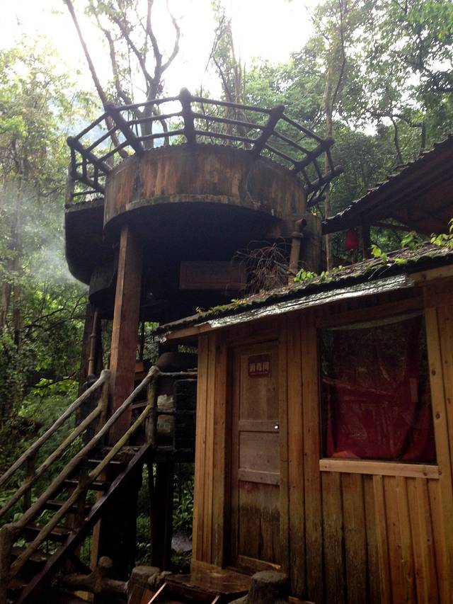 一个个凉亭一样的小角楼建立在树上,凉亭里面是一个个小型温泉泡池,拥有独立的私人空间,在这深山老林里,让温泉水润泽身体的每一个毛孔,这种时候只想静静的享受。