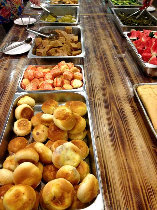 九州驿站餐厅,农家菜真的很农家~蔬菜什么都是自己种植的,值得推介的石牯塘腐竹、嫩滑的鲩鱼、清脆爽口的菜心,早餐(七点半开始才有)食物丰富,选择也多,有面包 粥 点心 棕子,牛奶 西瓜