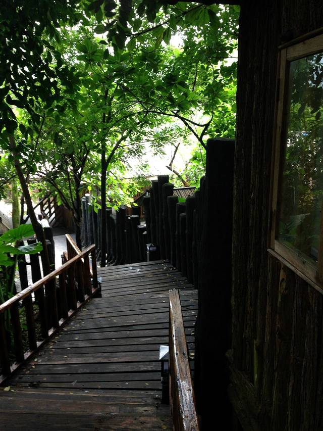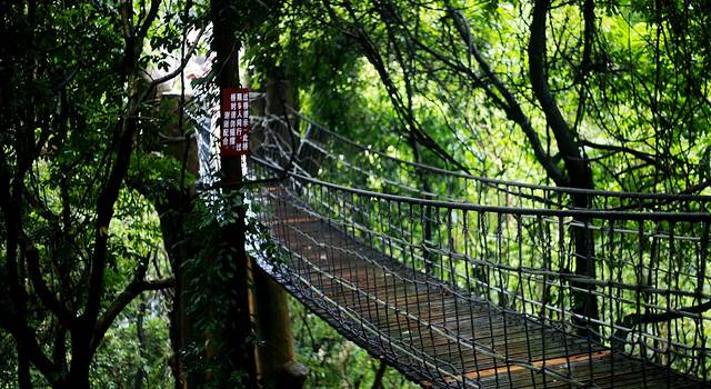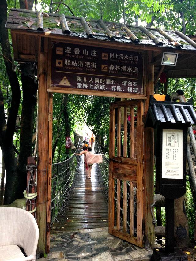 空中吊桥是通往树上温泉下午六点半关闭 一次性只能同时走三人,而且不能跳跃,走在桥上稍为用力就晃动 ,胆小的有恐高症的人还是不要尝试 绕道去树上温泉
