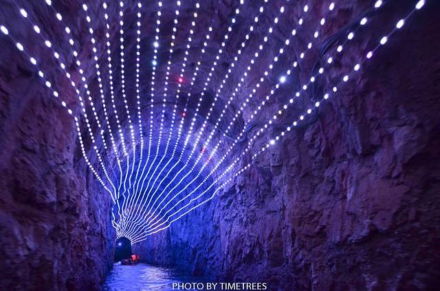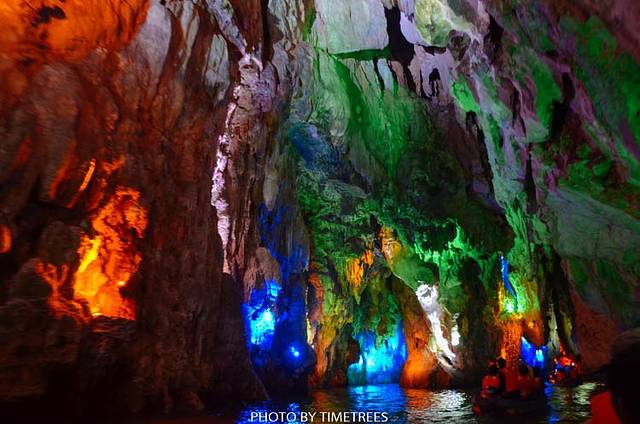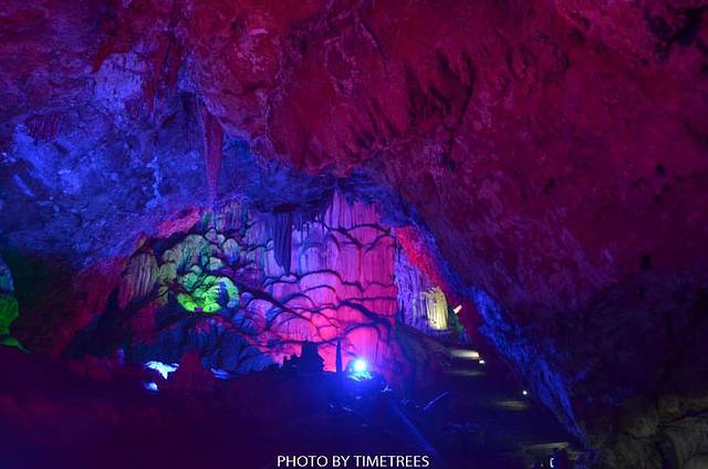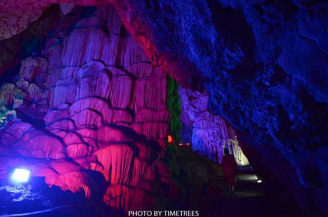 假如一直往上爬你会发现你已经来到了山的另外一面,而有地下河游船的二进龙宫就错过了。于是我们在虎穴洞折返回了码头,开始了龙宫一个光影效果更梦幻的洞穴。