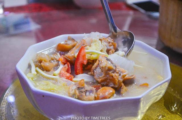 晚上我们就在客栈里点了几个菜,不贵,但是味道挺不错。猪蹄是原本用柴火熏过的,所以和白菜做汤还是别有一番风味的。