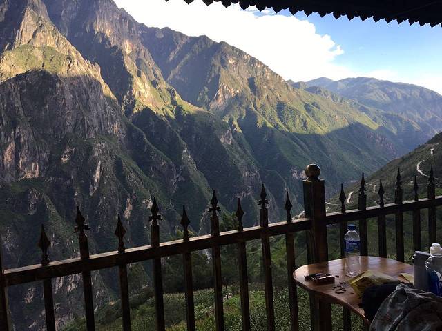 2、建议住在中途客栈(下一栈、本地湾),客栈阳台都面对玉龙雪山,阳台上可听见金沙江的咆哮,发呆一整天也很美。