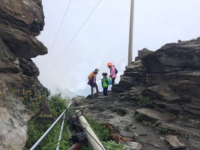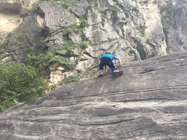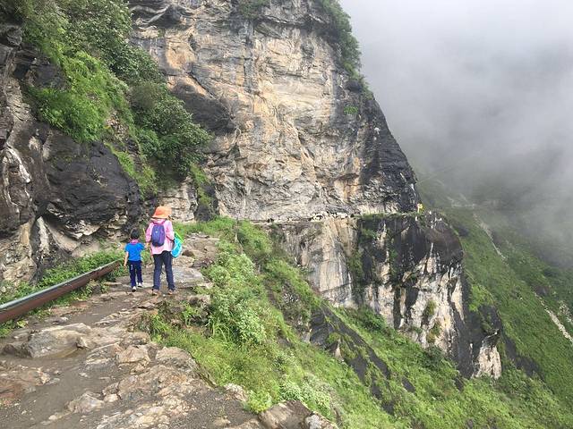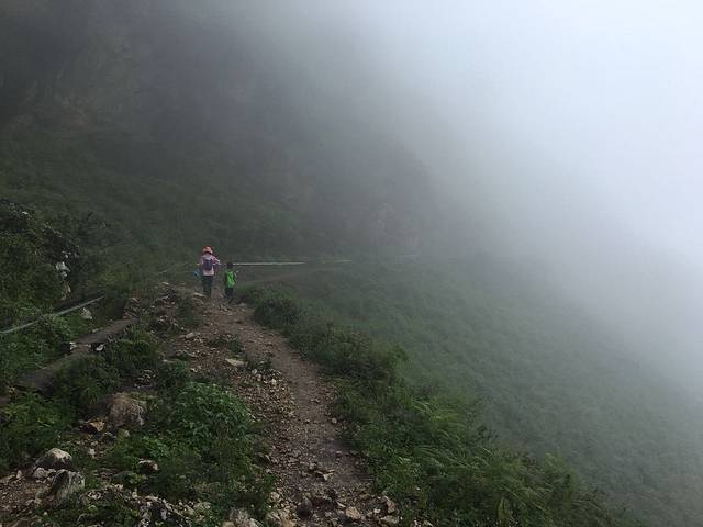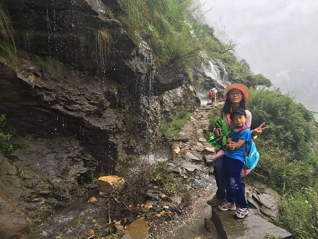 结果天梯栈道基本上是在垂直的岩壁上之字行走,路太险,带孩子真不建议走。由于天黑赶路,又怕小队长乱跑,所以没拍照片。