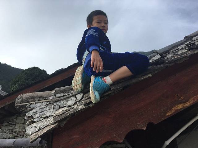 到达纳西雅阁。自驾听导航的没用,在离景区入口6公里左右可以看到一个“食佳庄农家院”牌子,反正我就听老板说到“石家庄”,以为自己在京石高速上。左拐上山,一直沿着水泥路看到客栈指示牌就到了(上虎跳景区在入口后9公里位置,如果到了上虎跳景区,则说明过了)。下午四点到达,休整,孩子们自己上房揭瓦。