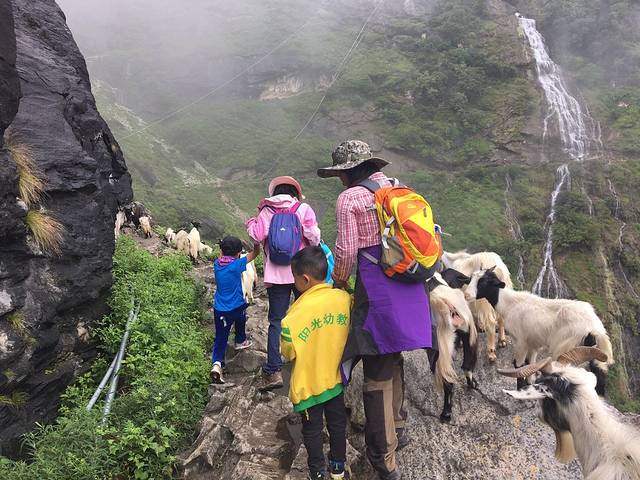 小羊,不要挡路嘛!你们能爬,在边上,我从里面过了