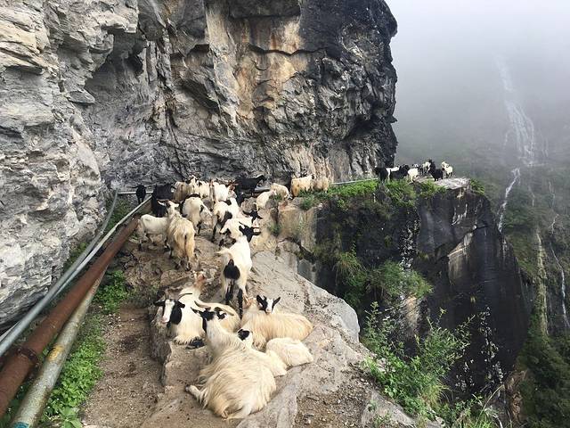 好像是……山羊挡住了去路?谁家的羊?赶紧让让!!!