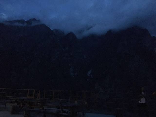 D3:由于上午下雨,中午12:00从中途客栈出发,下午4点到达张老师家客栈吃晚饭,5点一刻从张老师客栈下行至虎跳石,8点从天梯客栈返回(后面详细说明下虎跳石攻略),考虑第二天去香格里拉,打车9点到达纳西雅阁住宿。