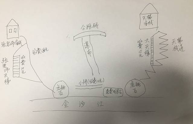 两条路下来有2个虎跳石,踏上石头都需过一个吊桥,过吊桥收费5元。