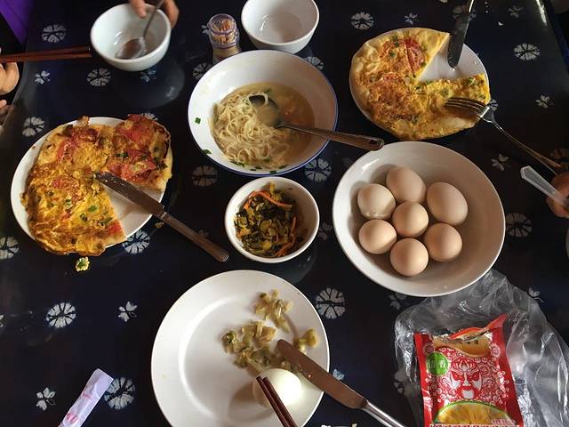 第二天,吃过早饭,10点粗发,能早点最好,省得天晴晒。早餐是中式西餐,味道还不错,多煮了5个鸡蛋,路上吃,老板送了我们4瓶水,还给我们交待了徒步的注意事项。