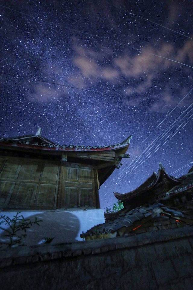 晚上是住在的一个民居,我们把他们家二楼包了,那天正好有世界杯比赛,不过不是球迷的我早早就睡了。后半夜那群摄影师跑出去拍了星空,借用几张曼天行的图,原来那晚上的星空那么美!
