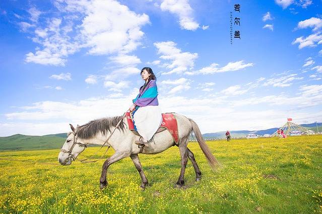晚上住川主寺,于是大家决定找一片马场骑马。